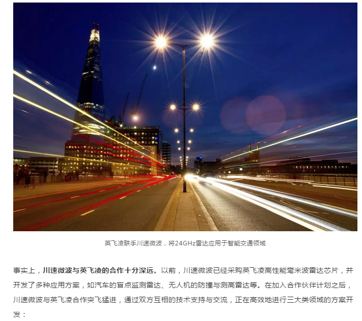 毫米波雷达迎来next十年爆发,川速微波携手英飞凌。